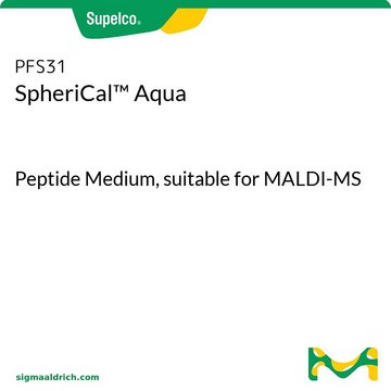 SpheriCal™ Aqua is ideal for calibration with aqueous systems commonly used in life sciences, e.g., matrices DHB, HCCA and SA or solvents such as water and acetonitrile, although ionization is preferred with alkali cations. Each vial of SpheriCal™ Neat contains sufficient calibration standard for over 100 calibration spots.