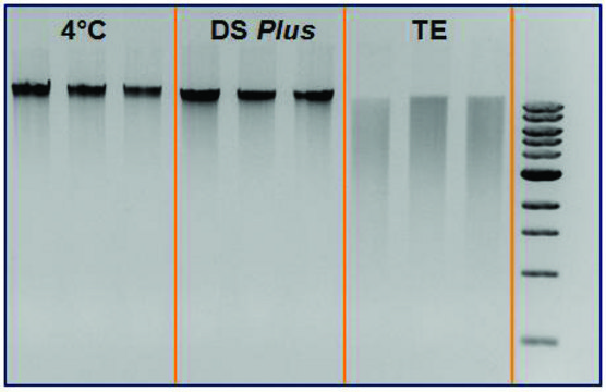 DNAstable® Plus enables you to preserve, store and ship your purified DNA samples at room temperature in liquid and liquid-to-dry formats. It offers flexibility with thermostability at extreme temperatures, and the ability to handle high concentrations of DNA. Recovery from the dry matrix is achieved within minutes by simply adding water. Your DNA sample is ready for downstream analysis without the need for any additional purification steps.