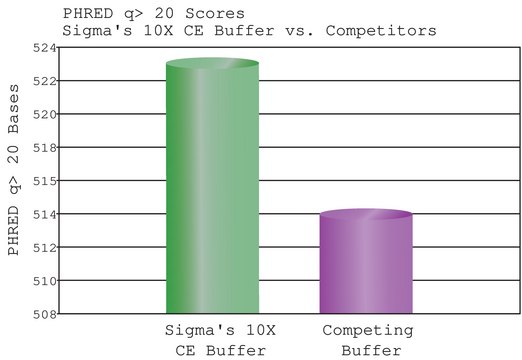 - Quality control testing of every lot ensures proper pH, conductivity, and performance for Capillary Electrophoresis Sequencing