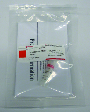 Sigma′s Lambda DNA Mixed Digest is provided in a solution of 10 mM Tris-HCl (pH 8.0), with 1.0 mM EDTA.