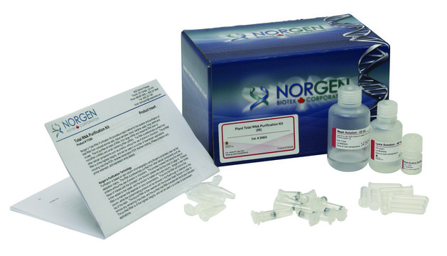 Norgen Biotek′s Plant/Fungi Total RNA Purification Kit provides a rapid method for the isolation and purification of total RNA, including viral RNA, from a wide range of plant and filamentous fungal species. Total RNA can be purified from fresh or frozen plant tissues, plant cells or filamentous fungi samples using this kit. All sizes of RNA are purified, from large mRNA and ribosomal RNA down to microRNA (miRNA) and small interfering RNA (siRNA). The procedure is rapid and convenient, as it does not rely on the use of liquid nitrogen in order to homogenize the samples.