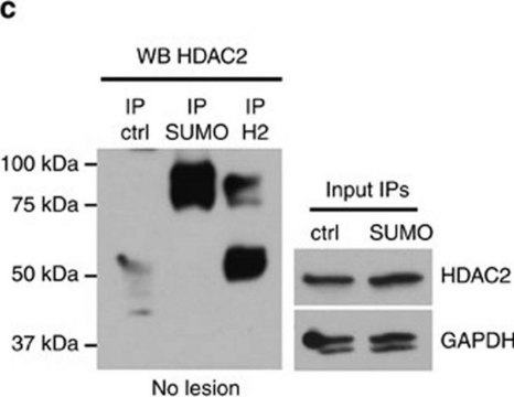 Monoclonal Anti-Histone Deacetylase 2 (HDAC2) recognizes human, bovine, dog, rat, mouse, and chicken HDAC2 (approx. 55 kDa). The antibody epitope resides within amino acids 471-488 of human HDAC2.
