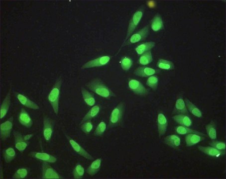 indirect immunofluorescence: 1-2 μg/mL using HeLa cells fixed with paraformaldehyde-Triton, western blot: 0.5-1 μg/mL using MCF7 nuclear extracts