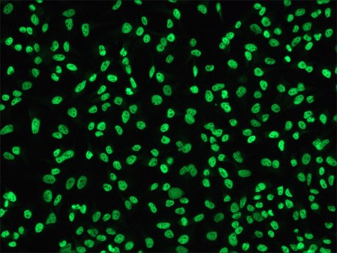 indirect immunofluorescence: 2-4 μg/mL using human HeLa cells fixed with paraformaldehyde-Triton, western blot: 0.5-1 μg/mL using nuclear extracts of human HeLa cells