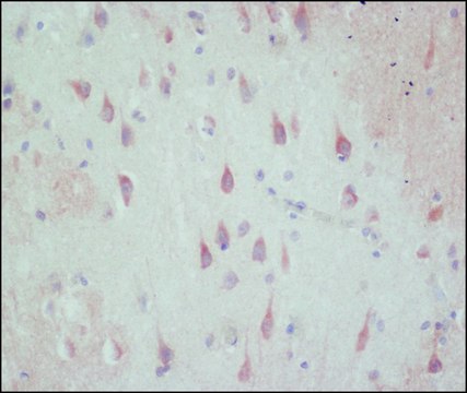 Anti-GABA antibody, Mouse monoclonal (mouse IgG1 isotype) is derived from the GB-69 hybridoma produced by the fusion of mouse myeloma cells and splenocytes from a mouse immunized with purified GABA conjugated to BSA. γ-Aminobutyric acid (GABA) is present in the central nervous system (CNS) of vertebrates. GABA is formed following enzymatic decarboxylation of L-glutamic acid by glutamic acid decarboxylase (GAD).