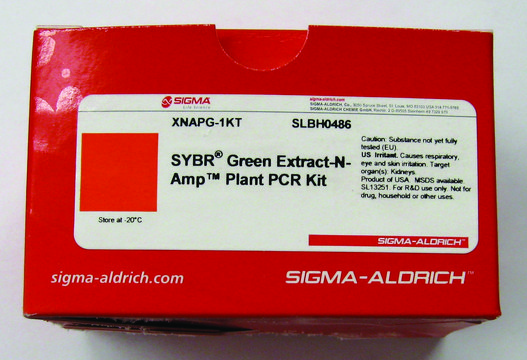 The SYBR Green Extract-N-Amp Plant PCR Kit contains all the reagents needed for rapid extraction of genomic DNA from plant leaf tissue coupled with direct polymerase chain reaction (PCR) amplification and real-time detection. The need for freezing plant tissue in liquid nitrogen or mechanical disruption and complete genomic DNA purification has been eliminated.