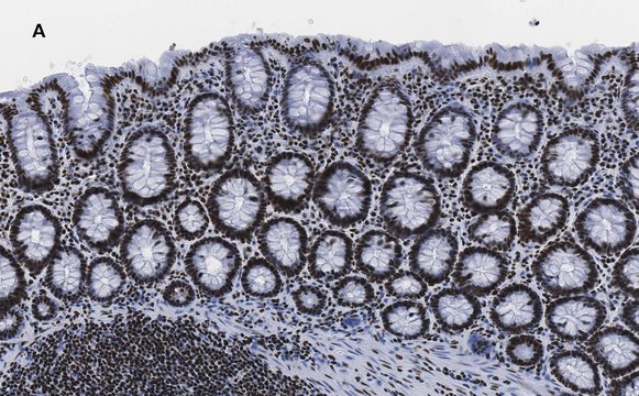 Immunohistochemistry (Paraffin) Analysis: A 1:100 dilution from a representative lot detected trimethyl-Histone H3 (Lys4) in human colon and human breast cancer tissue sections.