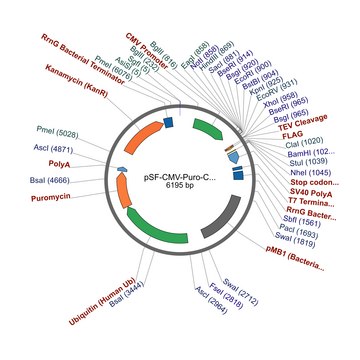 This plasmid is designed to express tagged proteins in mammalian cells either by transient transfection or by creating stable cell lines. It contains a puromycin resistance expression cassette using the human Ubiquitin promoter to drive expression and allow for the selection of cells containing the plasmid.