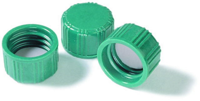 solid green melamine resin cap, F217/PTFE liner, for use with 2 mL vial (standard opening with 8-425 thread)