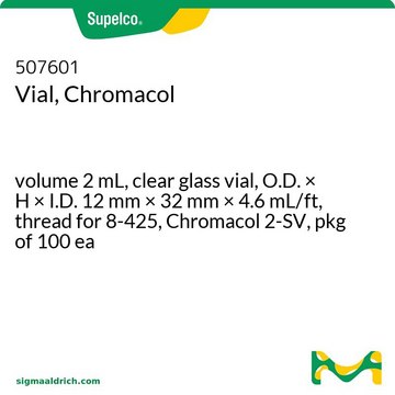 volume 2 mL, clear glass vial, O.D. × H × I.D. 12 mm × 32 mm × 4.6 mL/ft, thread for 8-425, Chromacol 2-SV, pkg of 100 ea