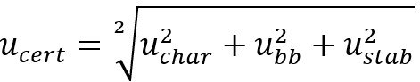 Equation 3.Uncertainty calculation for the certified concentration of a CRM including homogeneity and stability terms.